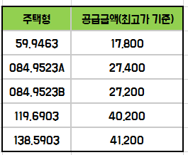 분양가는 입주자 공고문의 내용을 첨부드리도록 하겠습니다.