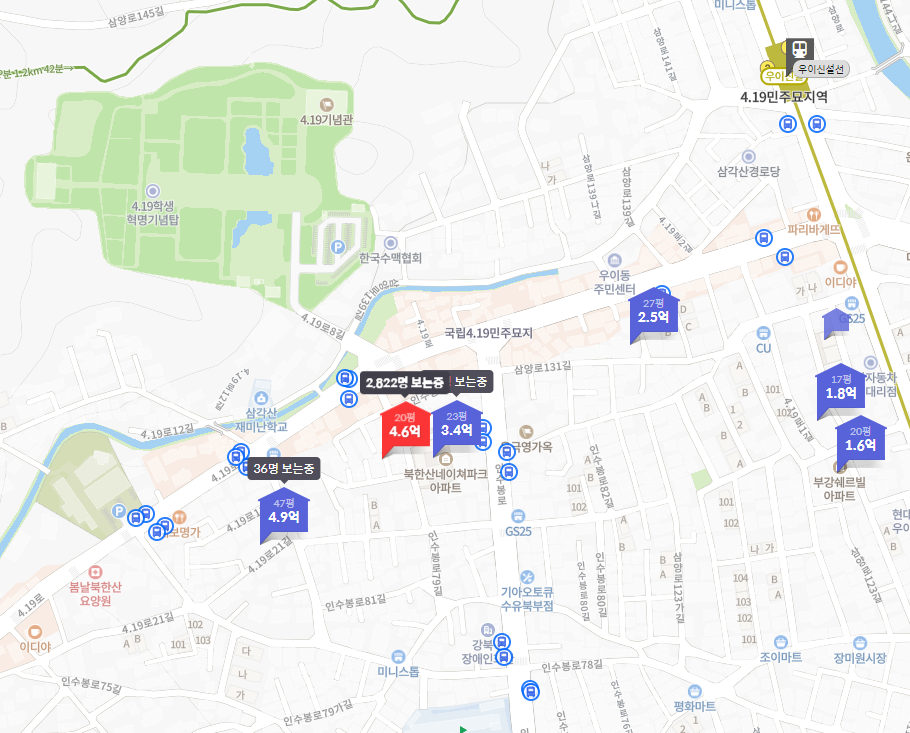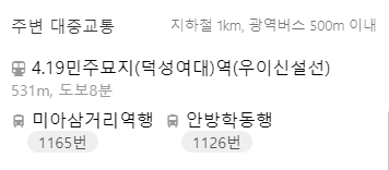 4.19 민주 묘지 덕성여대 역은 도보로 8분정도 소요됩니다.