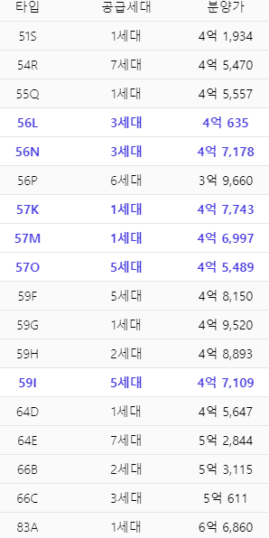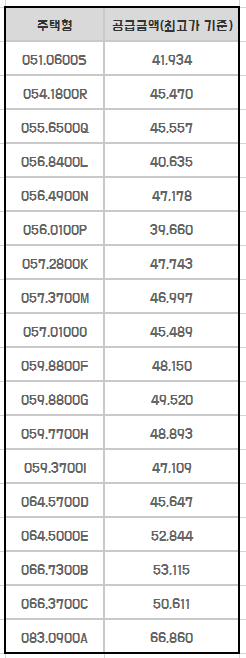 하기 대표 분양가 정보 확인 부탁드립니다.