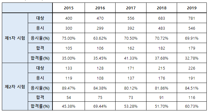가맹거래사 합격률은 아래 표를 통해 확인 부탁드립니다.