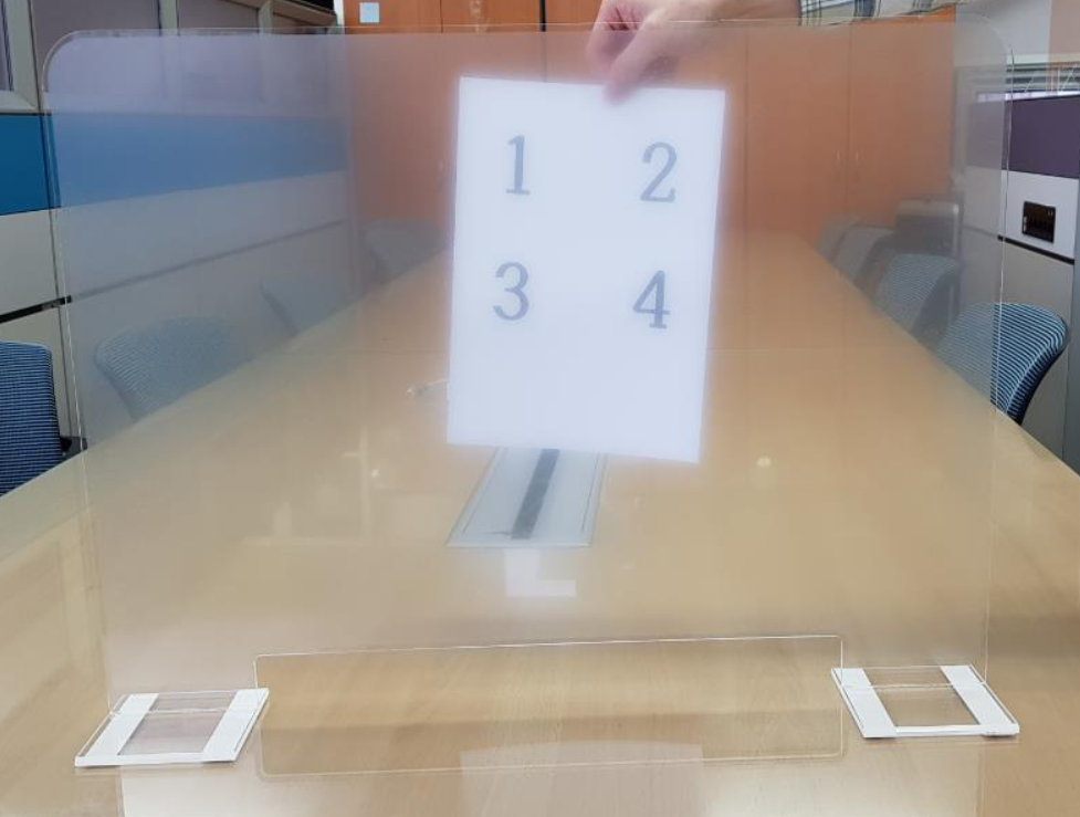 교육부 측에서도 시험지가 칸막이에 막히는 점을 고려했는지 칸막이 아래로 시험지가 삐져 나올 수 있을 만한 틈을 낸 방식의 칸막이를 채택하였습니다.