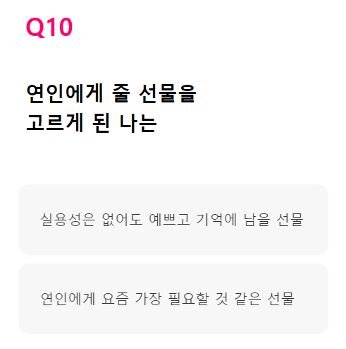 Q. 연인에게 줄 선물을 고르게 된 나는
