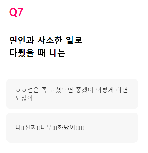 Q. 연인과 사소한 일로 다퉜을 때 나는