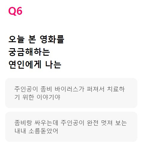 Q. 오늘 본 영화를 궁금해하는 연인에게 나는