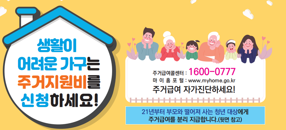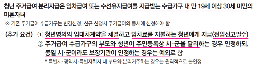 이번 21년 부터는 부모와 떨어져 사는 청년 대상에게도 주거 급여를 분리하여 지급합니다.