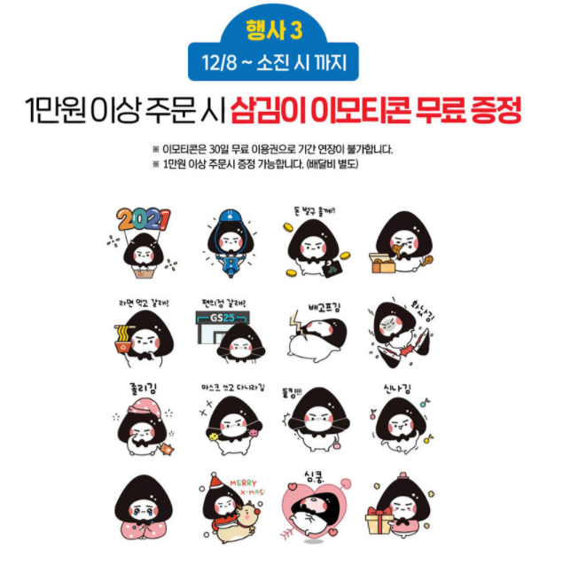 또한 삼김이 이모티콘을 무료로 증정합니다.