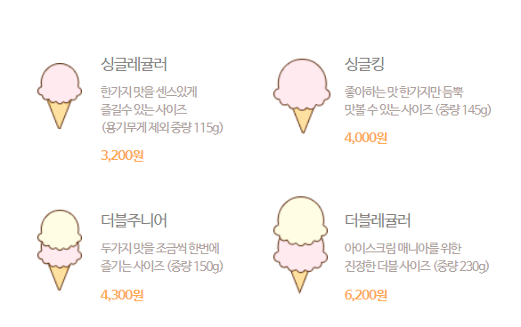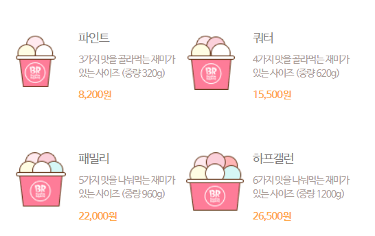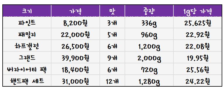 늘 궁금한 배스킨라빈스 사이즈 그리고 맛 수량, 중량 그리고 가격까지!