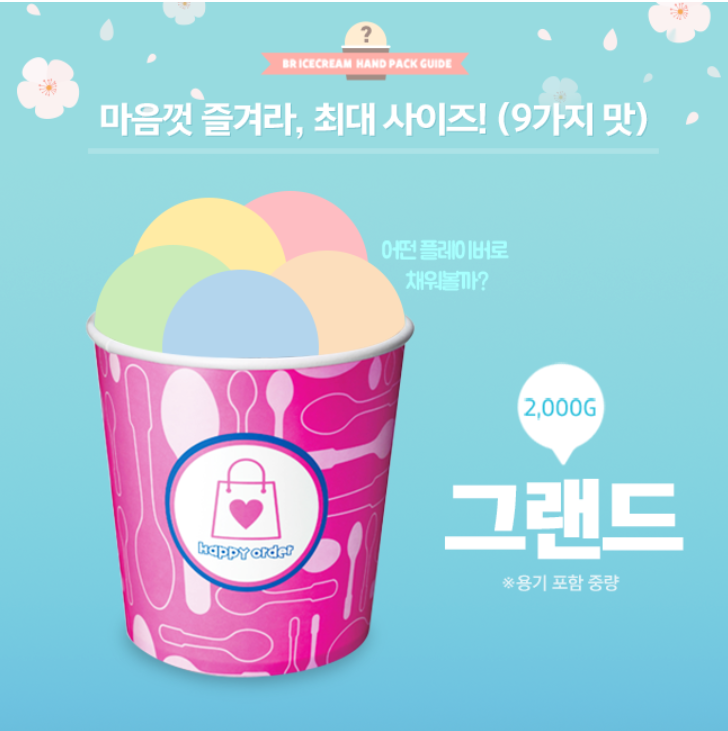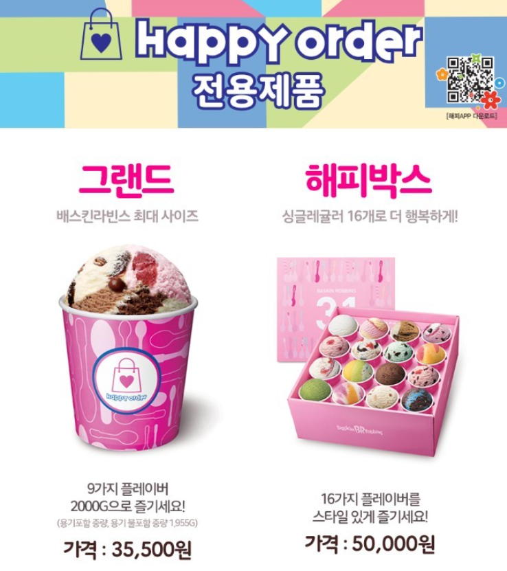 가끔 배스킨라빈스 최대사이즈 이벤트를 진행하기 때문에 해피오더로 이용하시면 좋을 거 같습니다.