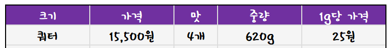 4가지 맛을 골라먹는 재미가 있는 사이즈 (중량 620g)
