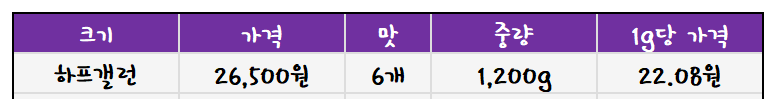 하프갤런 사이즈의 가격은 26,500원입니다.