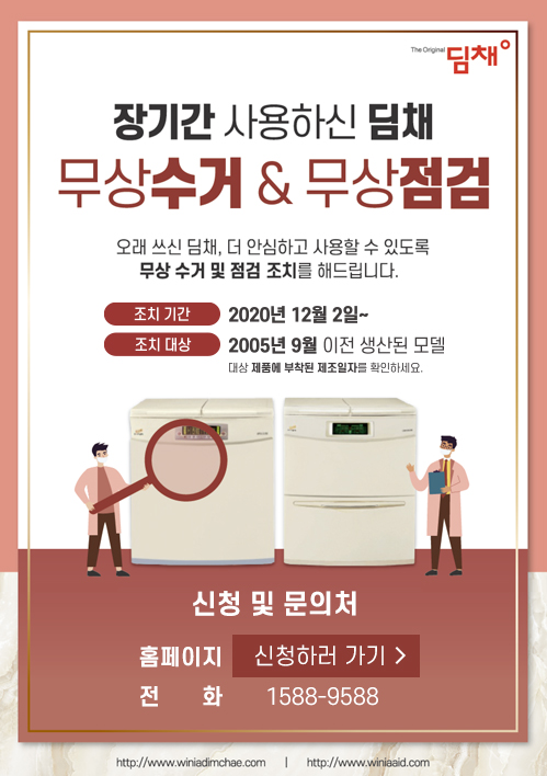 혹시 2005년 9월 이전 위니아 딤채를 사용하고 계시다면 반드시 무상 점검을 받으시길 바랍니다.
