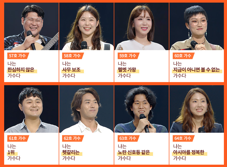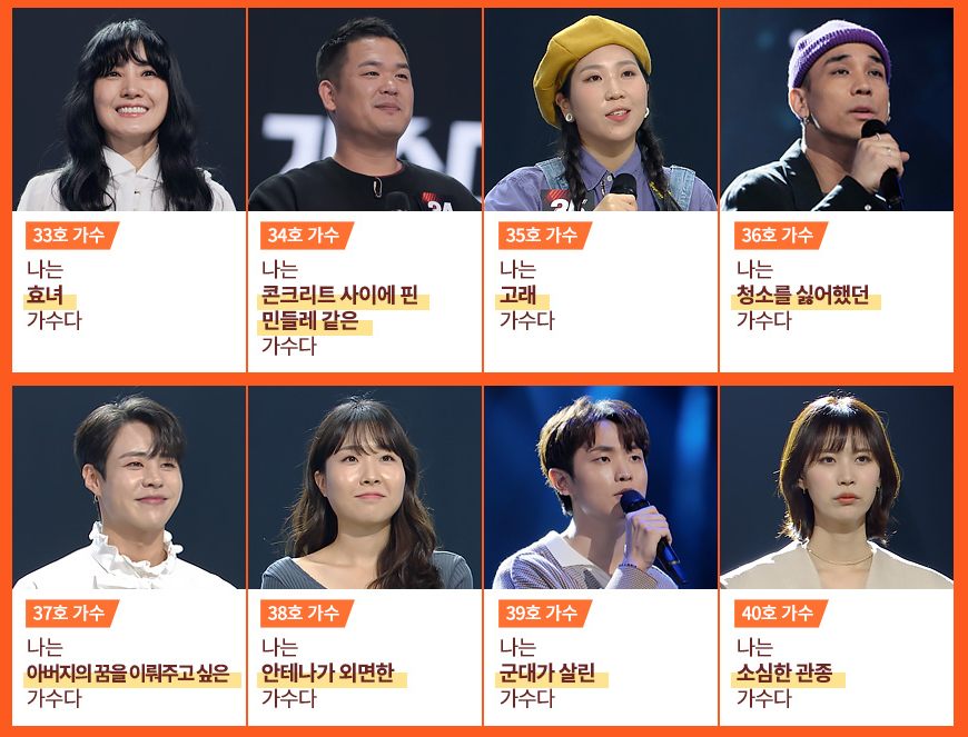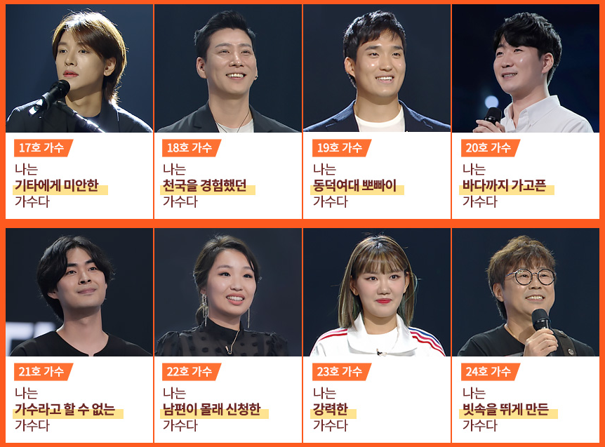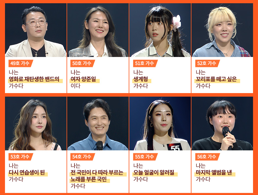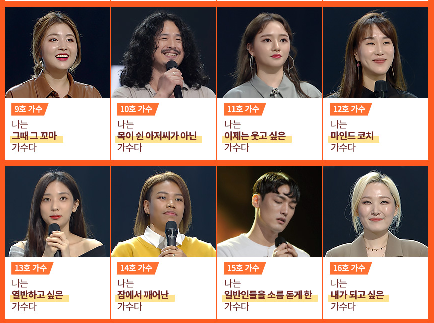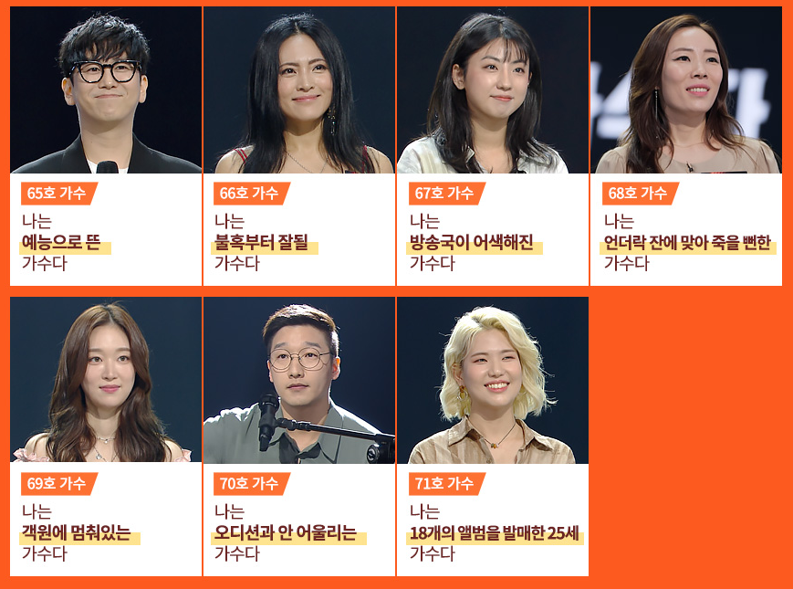가수들은 7개 조(재야의 고수 A,B / OST / 오디션 최강자 / 찐 무명 / 슈가맨 / 홀로서기)로 나뉘어 무대를 펼집니다.