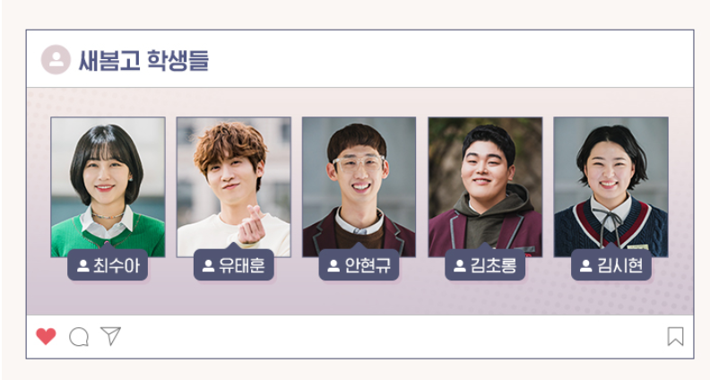 매력적인 외모, 모델핏 피지컬. 단단한 어깨에 성난 몸... 표정도 늘 성이 나 있다. 거기에 감미로운 보이스로 아이돌 데뷔 직전까지 갔던 새봄고의 아이돌. 타고난 마초스러운 분위기 때문에 조폭들과 연관이 돼 있다는 둥, 옆 학교를 이렇게 저렇게 뭉갰다는 둥 인소재질 같은 소문이 늘 따르지만. 실은 아픈 엄마 간병을 도맡아 하고 여동생을 끔찍이 아끼는 따뜻한 아들이자 다정한 오빠다.