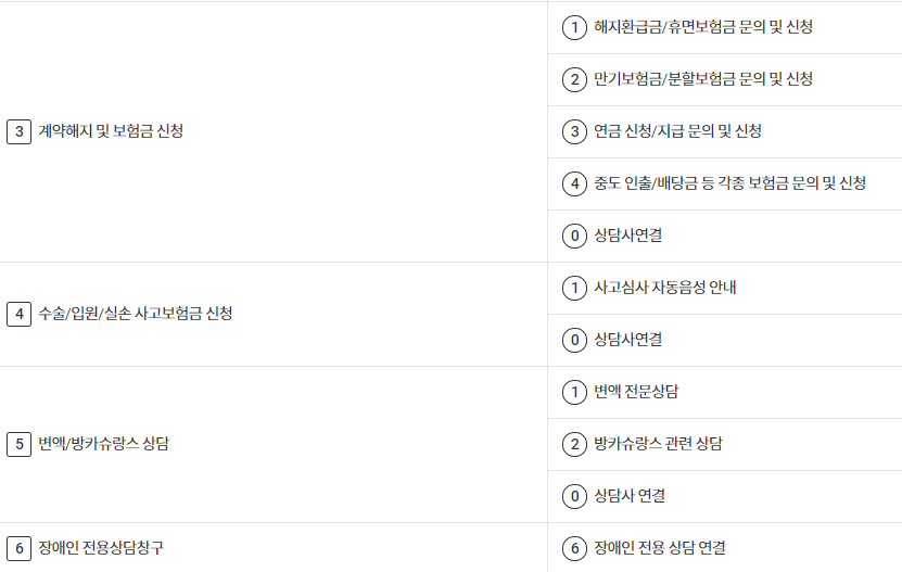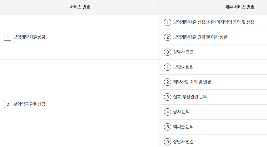 각서비스별 세부 전화번호가 있기 때문에 해당 번호를 기억하셔서 연락하시면 보다 신속하고 정확하게 상담을 받으실 수 있습니다.