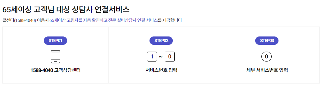 65세 이상 고객님을 대상으로 상담사 연결 서비스를 제공합니다.