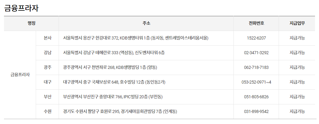 본사 서울특별시 용산구 한강대로 372, KDB생명타워 1층 (동자동, 센트레빌아스테리움서울) 1522-6207