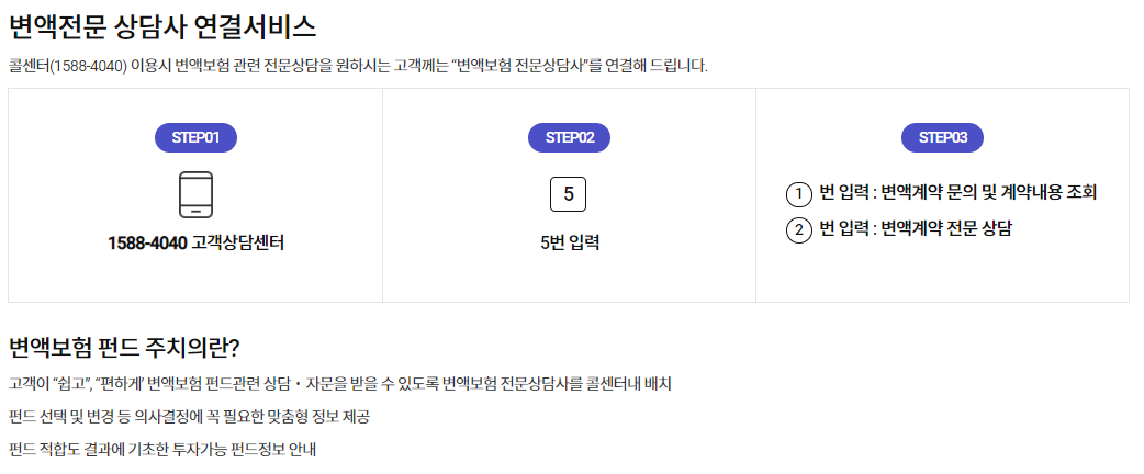 고객이 “쉽고”, “편하게’ 변액보험 펀드관련 상담ㆍ자문을 받을 수 있도록 변액보험 전문상담사를 콜센터내 배치해서,