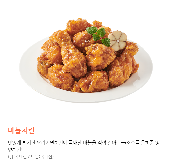 프라이드 치킨에 마늘소스를 묻힌 치킨입니다.