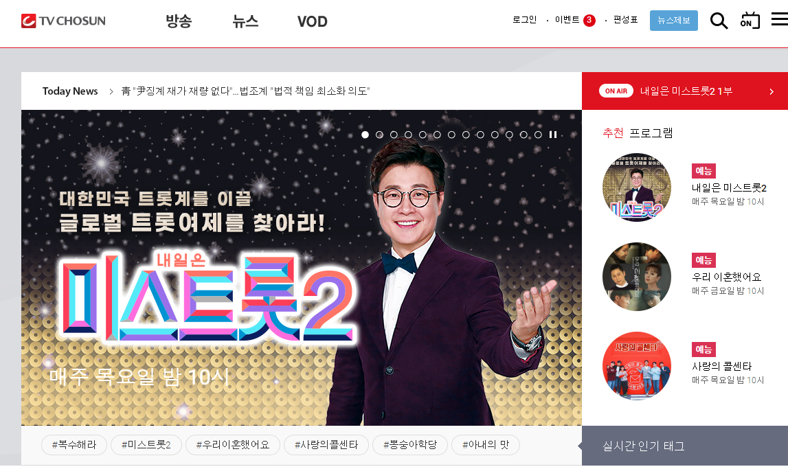 마지막 방법은 TV조선 온에어를 통해 무료로 PC또는 모바일로 시청이 가능하니 이용하실 수 있습니다. 단, TV조선의 프로그램 편성표에 따라 해당 편성 시간에만 이용이 가능합니다.