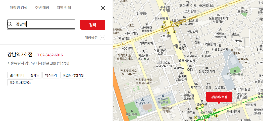 2. 매장명을 검색합니다.