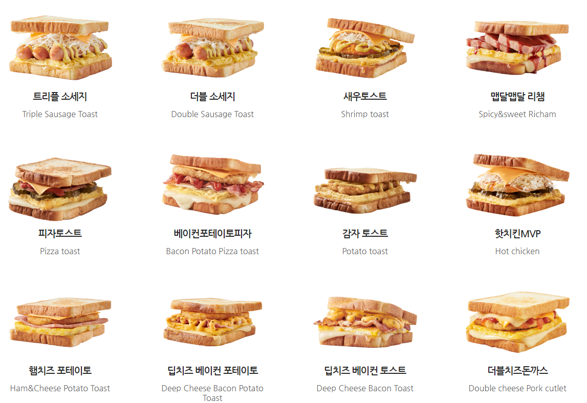 대한민국의 토스트 프랜차이즈 브랜드로 800여 개 이상의 매장이 운영 중입니다.