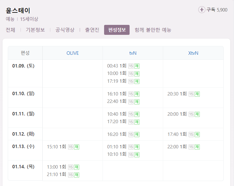 윤스테이 재방송 2021.01.09 (토) 오후 5:20 ~ 오후 7:20 [1회]