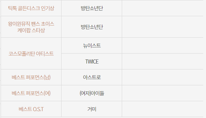 가온차트에서 제공받은 음원 이용량과 음반 판매량을 각각 30%씩 반영해 정량평가를 60%로 합산
