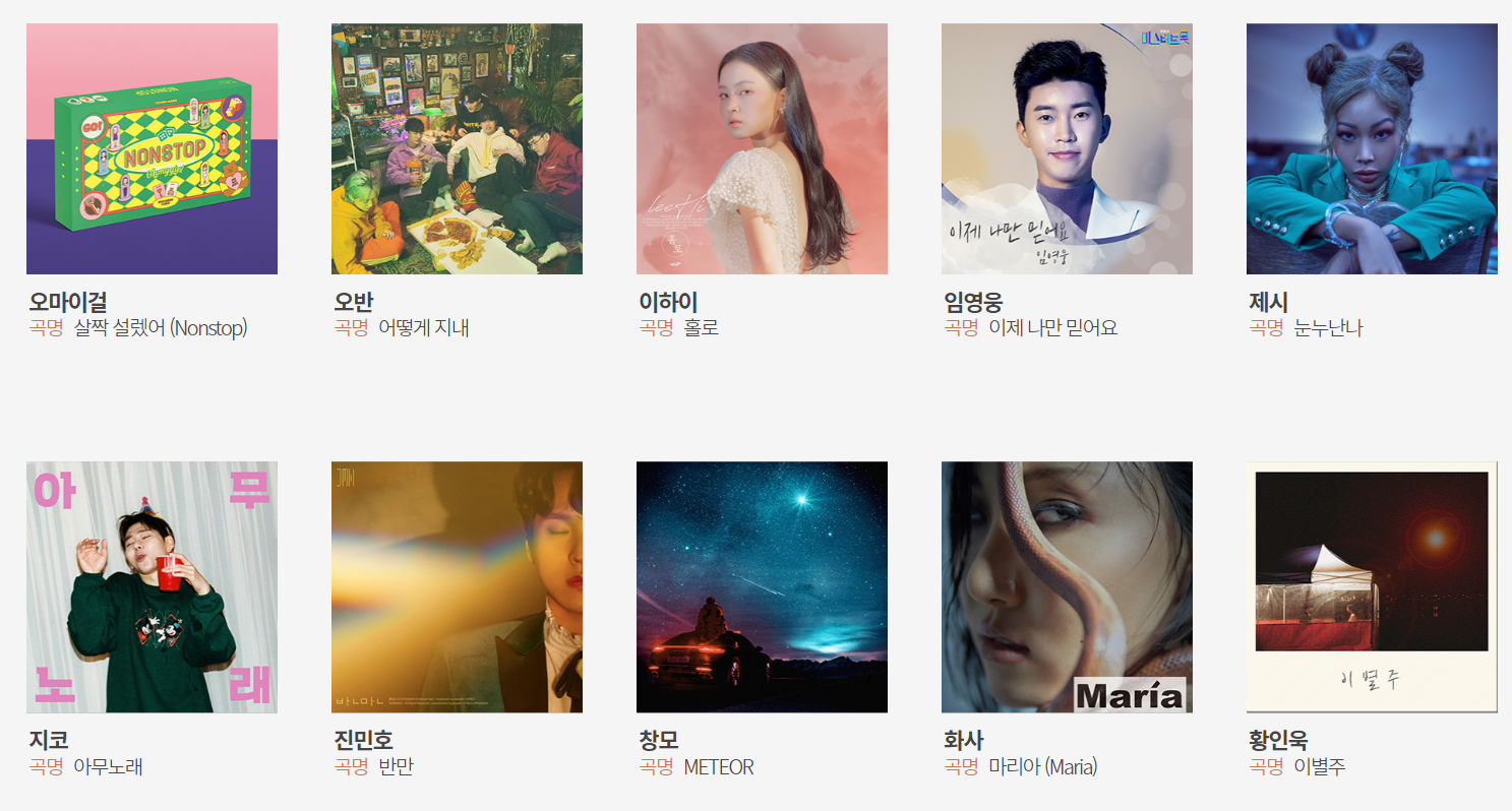 장르 트렌드를 선도하고 뛰어난 음악적 성과를 낸 개인/팀을 별도 기준에 따라 선정