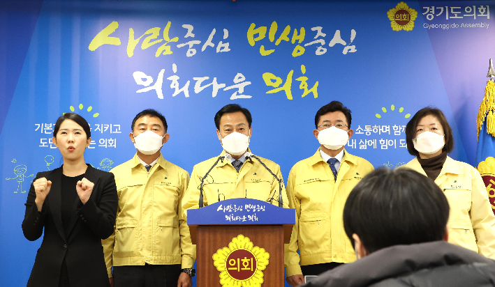 장현국 경기도의회 의장과 진용복·문경희 부의장, 박근철 더불어민주당 대표의원 등은 이날 기자회견을 열고, "제2차 경기도 재난기본소득 지급을 집행부에 공식 제안한다"고 밝혔습니다.