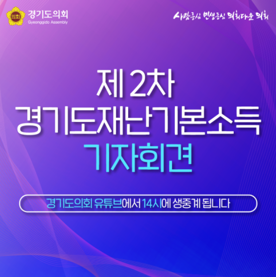 '재난기본소득'은 재난 발생 시 도민의 생활안정과 지역경제 활성화를 위해 도민 모두에게 지급하는 지원금으로 경기도의회는 코로나19 장기화로 2차 재난기본소득 지급의 필요성에 대한 도민의 목소리가 커짐에 따라 재정현황을 분석하는 등 예산편성 가능성을 검토했습니다.