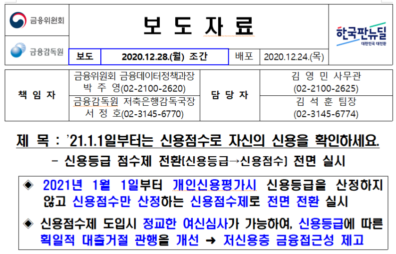 향후에는 획일적 대출 거절 관행과 저신용층의 금융접근성이 개선 될 것으로 보입니다. 오늘은 금융위원회의 발표한 신용점수제를 알아보겠습니다.