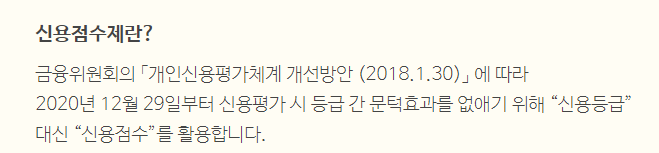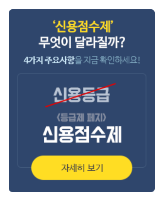 우리 금융생활에 직접적인 영향을 미치는 변화 하나를 소개하고자 합니다. 바로 ‘신용점수제’의 도입되었습니다.