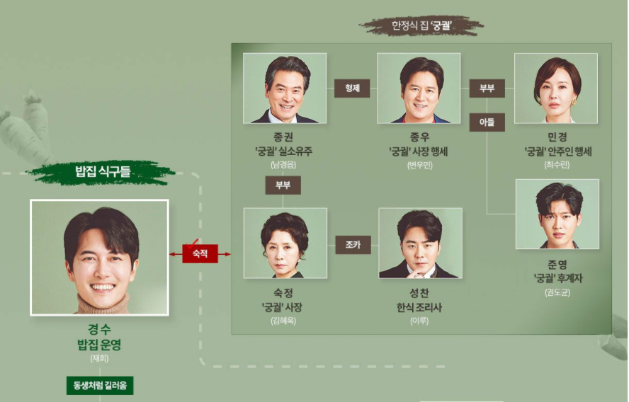 자식이 없는 종권은 조카인 준영을 자식처럼 사랑했고 남들 앞에서도 한정식 집 “궁궐”의 미래의 주인은 준영이라고 공공연히 얘기했었다. 비록 종권이 숙정과 결혼했지만 숙정이 끝내 임신에 성공하지 못하자 “궁궐”의 후계자는 여전히 준영으로 공식화 되어있다.