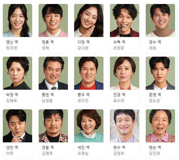 첫 회부터 친근한 인물과 그들이 살아가는 이야기를 그린 ‘밥이 되어라’는 어린 영신(김시하)과 경수(재희)의 만남부터 서로를 가족으로 받아들이는 과정과 영신과 정훈, 다정, 오복 네 친구의 동심을 잔잔하게 그려내 시청자의 감성을 자극했는데요. 오늘은 MBC 새 일일드라마 '밥이 되어라' 등장인물, 인물관계도 등을 살펴보도록 하겠습니다.