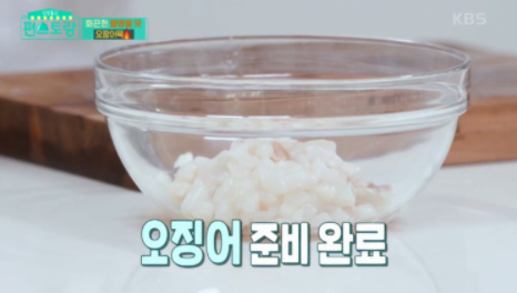 1. 오징어 몸통 1개는 껍질을 제거하고 0.8cm 큐브 모양으로 잘라줍니다.