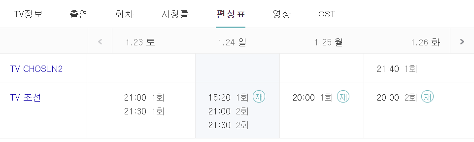 TV조선 결혼작사 이혼작곡 1회 본방송을 놓치셨던 분은 검색사이트에서 '결혼작사 이혼작곡 재방송' 이라고만 검색하시면 편성표 정보를 확인하실 수 있습니다.