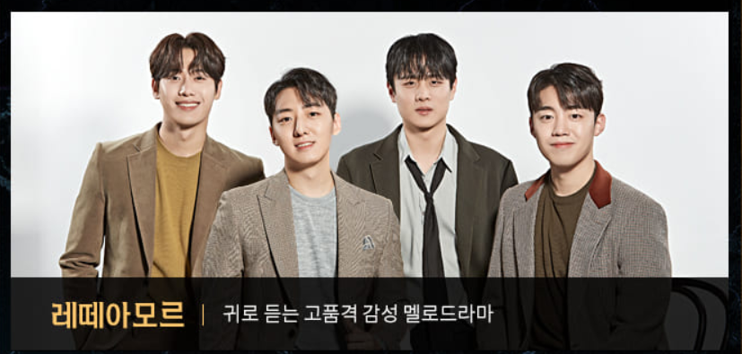 2020년 JTBC 예능 팬텀싱어 3를 통해 결성되었으며 전설의 테너 유채훈, 세상에 없던 목소리 카운터테너 최성훈, 귀요미 바리톤 정민성, 불꽃테너 박기훈으로 구성되었습니다. 팬텀싱어 시리즈 역대 최초로 성악가 4인으로만 이루졌으며, 전 세계 최초 우주최초 정통 카운터테너가 포함된 일명 성악 어벤져스 팀입니다.
