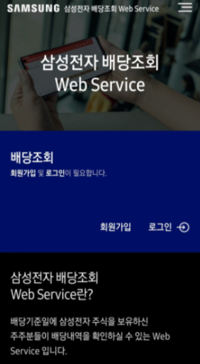 삼성전자 배담금을 조회하길 원하실 때는 삼성전자 홈페이지에 있는 '배당 조회 Web'을 이용하시면 배당 기준일에 삼성전자 주식을 보유하신 주주들이 배당내역을 손쉽게 확인할 수 있습니다.