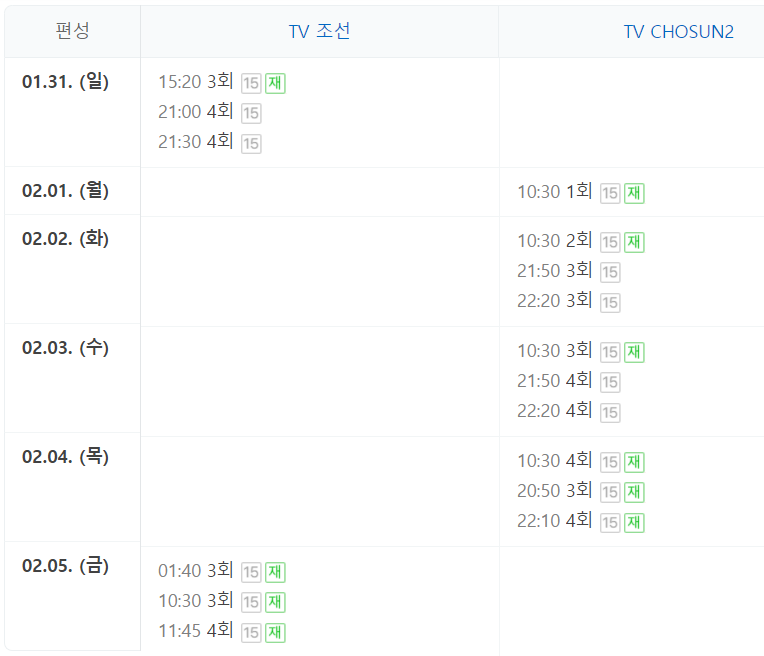 이외 다시보기는 웨이브(wavve) 또는 티빙(Tving) 등에서도 가능하십니다.