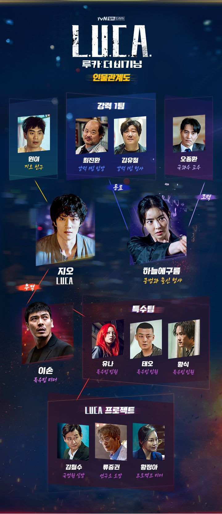 새롭게 시작되는 루카 더 비기닝 줄거리는 <특별한 능력 때문에 세상에 쫓기게 된 '지오'가 유일하게 그의 모습을 기억하는 강력반 형사 '구름'과 함께 거대한 음모에 맞서는 스펙터클 추격 액션극>입니다.