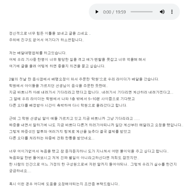청담에이프릴어학원 소속 강사가 배달원에게 "공부 잘했으면 배달을 했겠나?"라고 막말을 퍼붓는 녹취록이 온라인에 퍼져 누리꾼의 공분을 사고 있습니다. 관련 내용을 전달드리겠습니다.