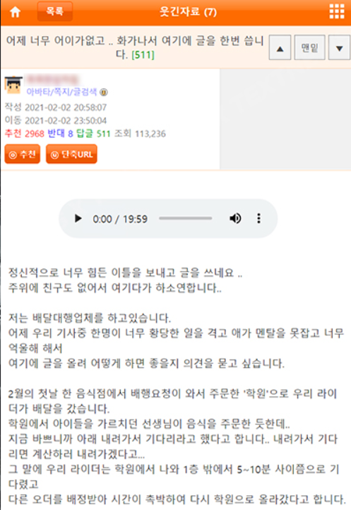 사건을 접한 누리꾼들은 청담러닝 홈페이지에 항의했고 답변을 통해 1천만 원씩 번다던 배달원 비하 발언 B씨는 에이프릴어학원 동작캠퍼스 학원 강사가 아니였다고 단기 근무한 하원도우미였다고 합니다.