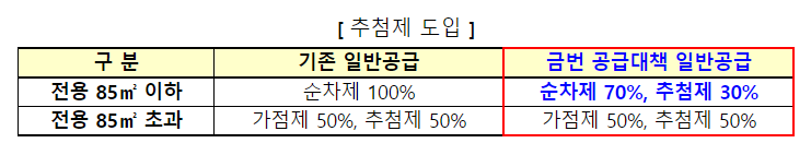 이번 대책에 따라 공급되는 물량에는 일반공급 비율을 상향하는 한편, 일부는 추첨제로 공급하게 됩니다.