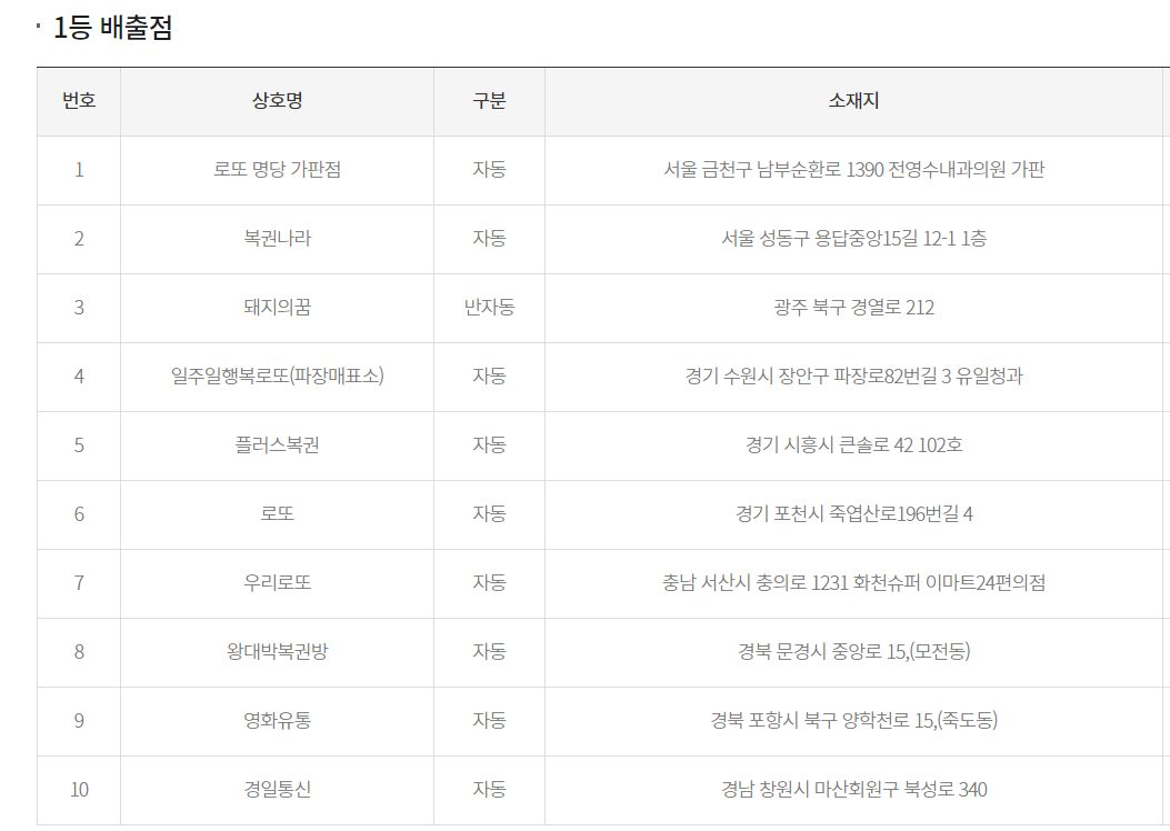 1등 배출점은 10곳으로 자동 9건, 반자동 1건이 당첨됐습니다.