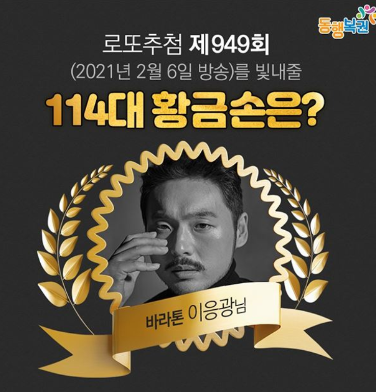 로또추첨 제949회(2월 6일 방송) 114대 황금손 주인공은 성악가 바리톤 이응광입니다.
