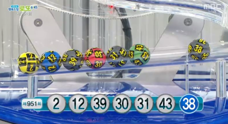 로또복권 추첨에서 '2, 12, 30, 31, 39, 43'이 1등 당첨번호로 뽑혔다고 밝혔습니다.