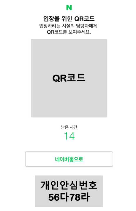 개인 인증을 받으면 QR코드 화면 아래에 개인 안심번호가 발급돼 나타납니다.