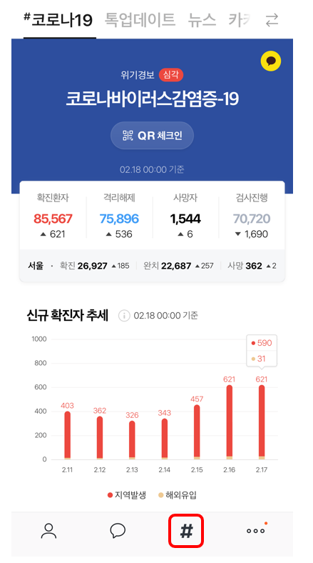 3. 페이지 오른쪽 상단에 QR체크인 선택