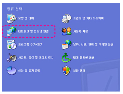 제어판 → ‘네트워크 및 인터넷 연결’ 클릭