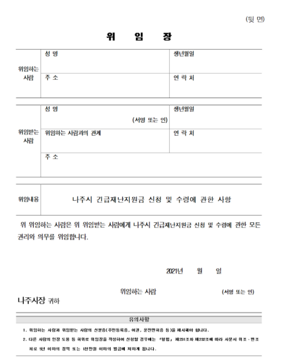 나주시 재난지원금 신청 서식은 위의 다운로드하실 수 있습니다.